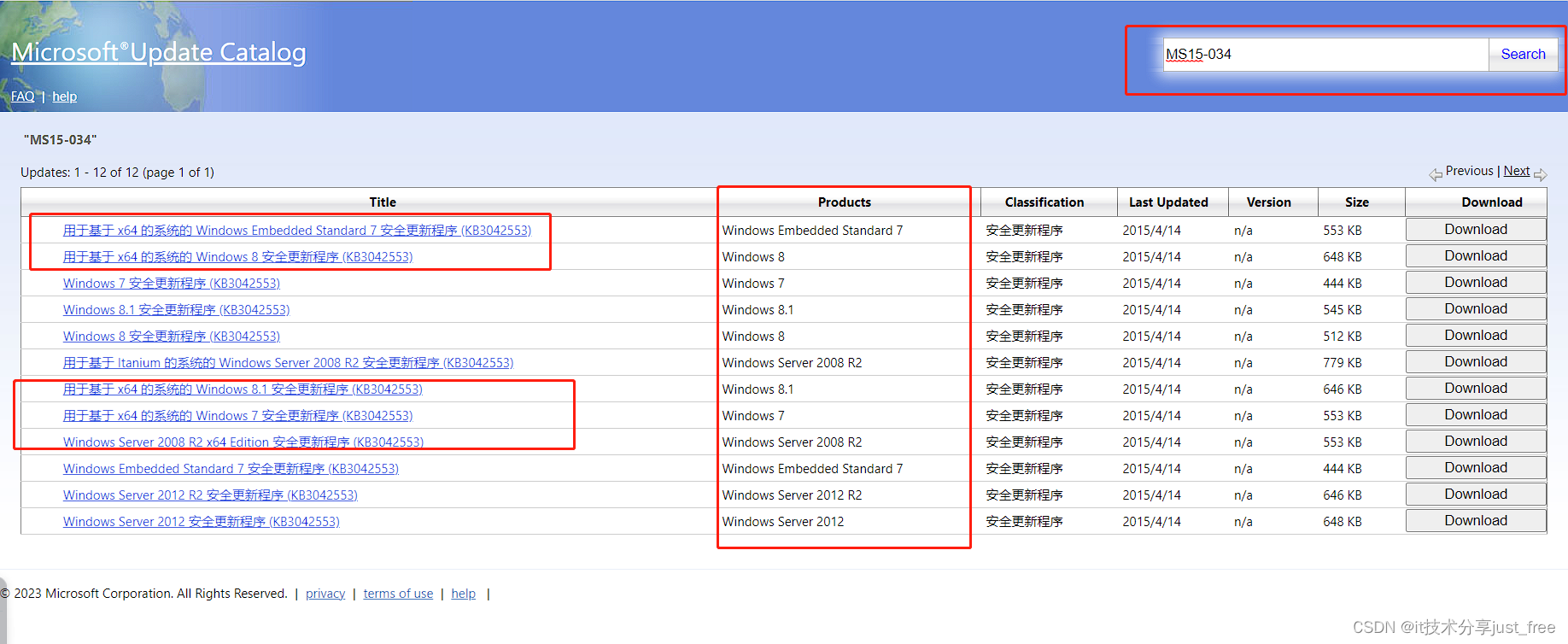 进入微软补丁下载链接,搜索框中搜索MS编号如下图所示: