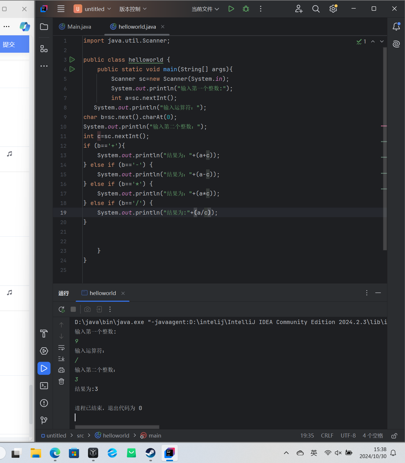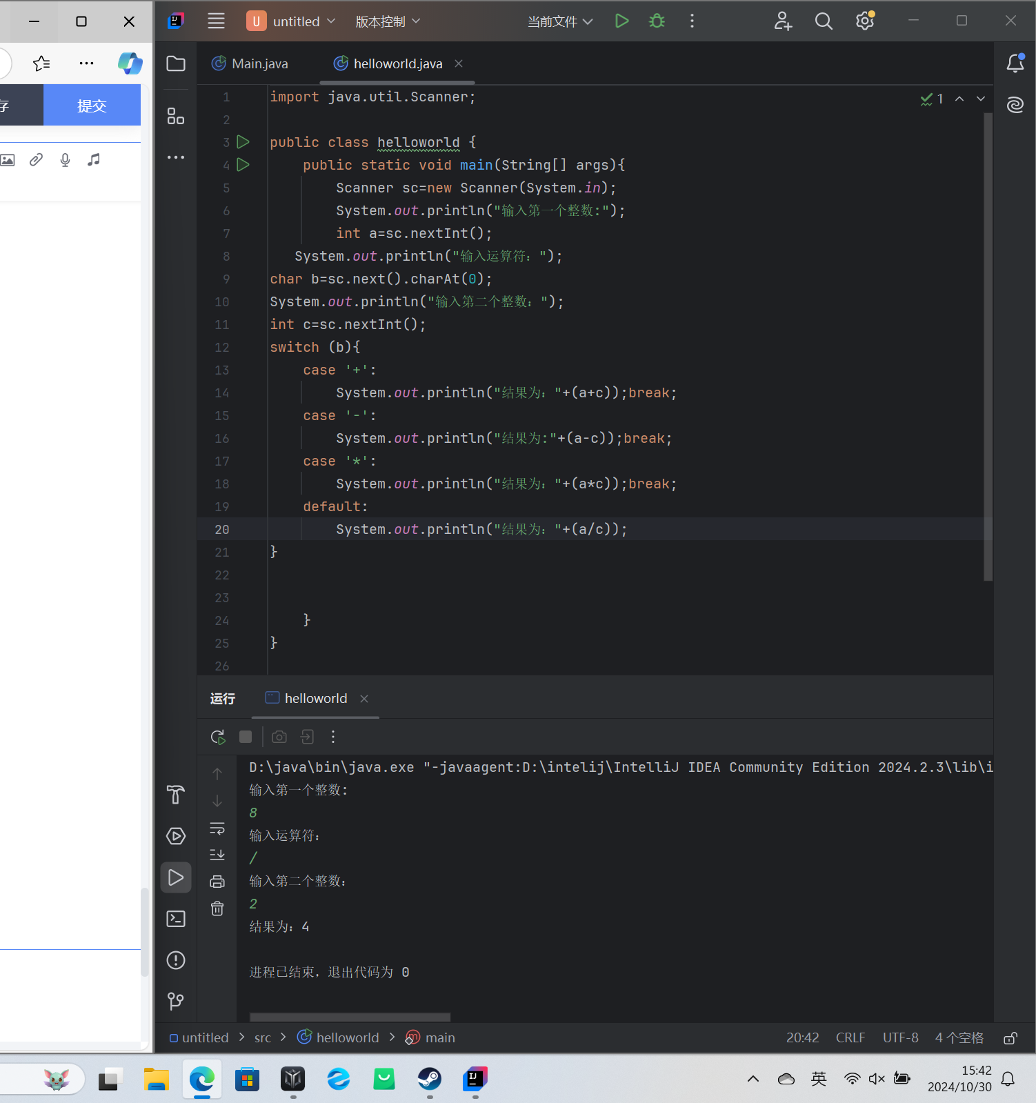 13. (简答题, 10分)编写一个简单的计算器,实现两个整型数的四则运算。