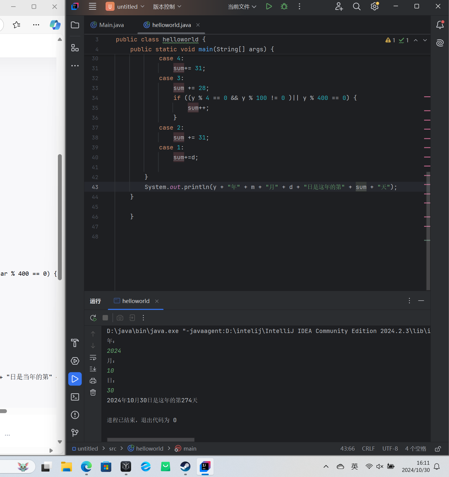 12. (简答题, 10分)编写程序,接收键盘输入的年、月、日,统计出这一天是一年中的第几天?【困难】