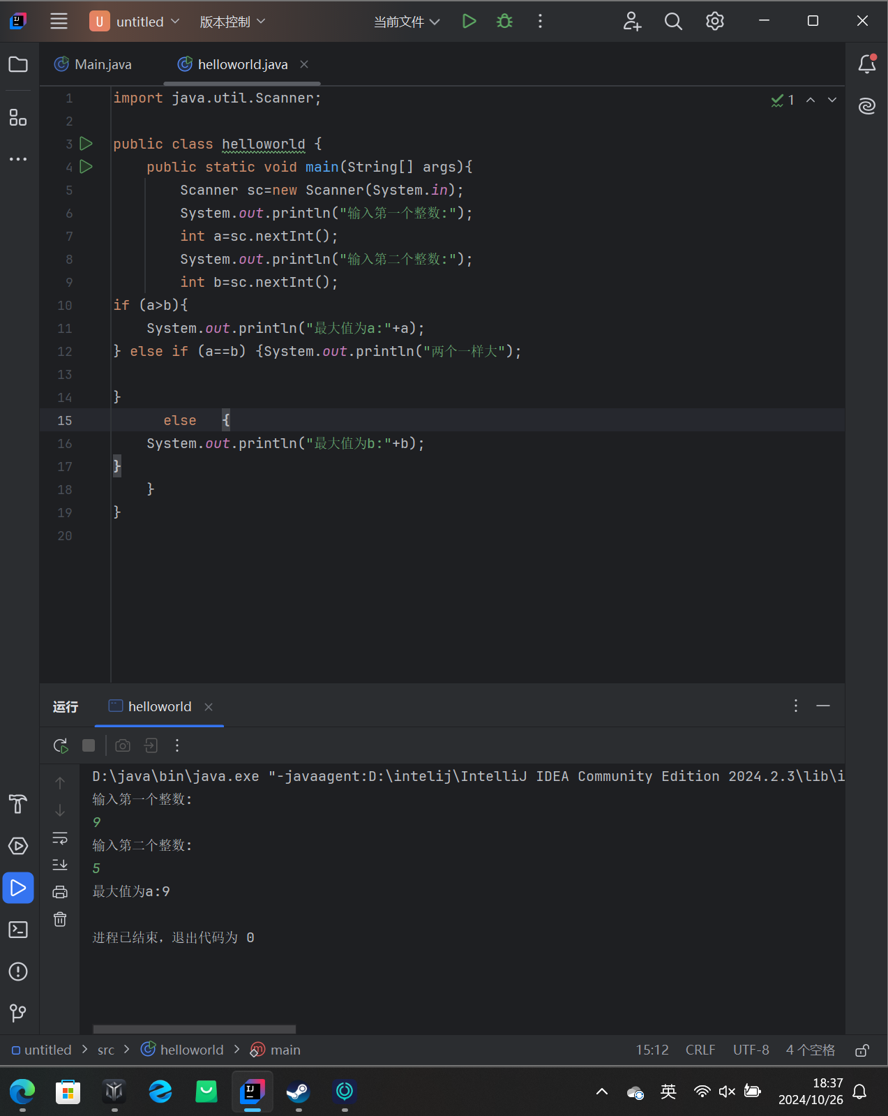 5. (简答题, 5分)编写程序,从键盘输入两个整数,输出两个数中的最大值。