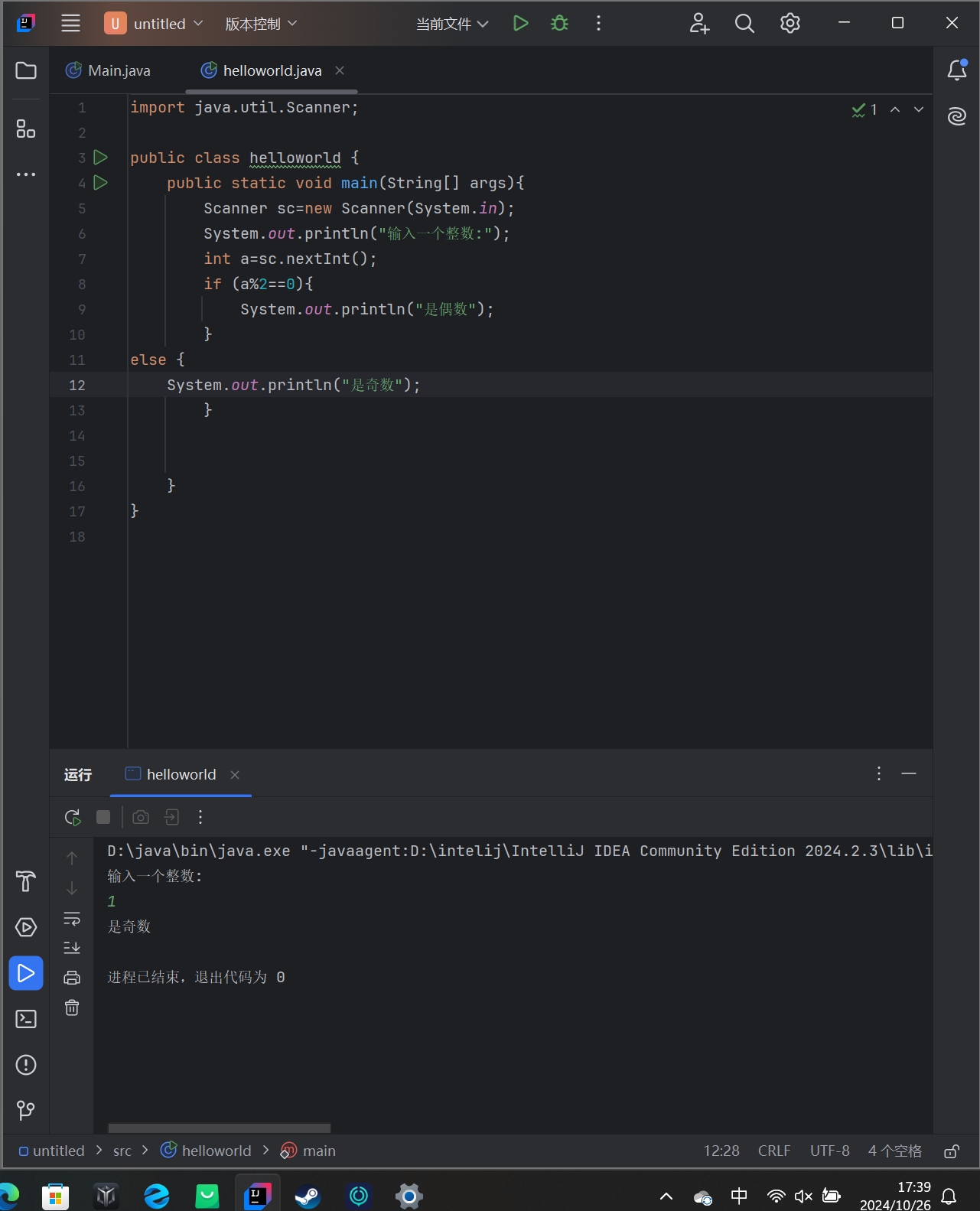 3. (简答题, 5分)编写程序,从键盘输入一个整数,判断该数的奇偶性。