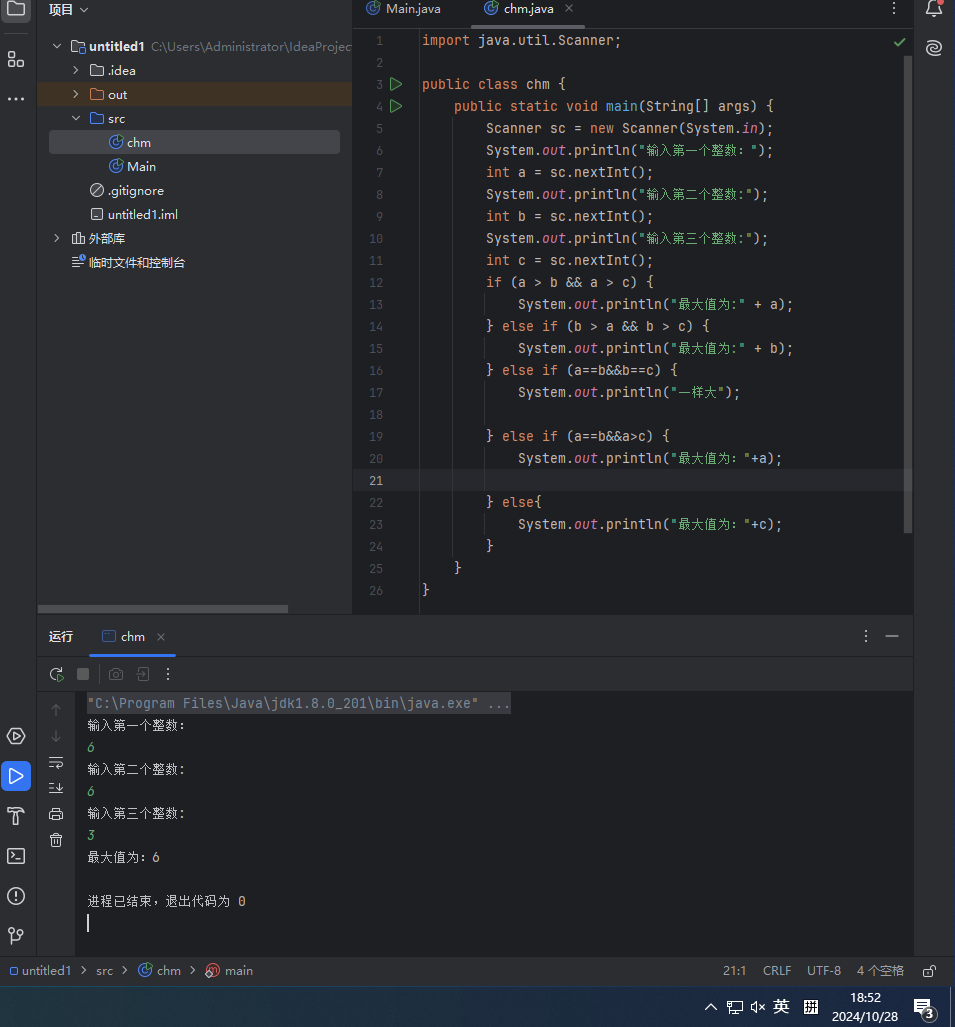 7. (简答题, 5分)编写程序,从键盘输入3个整数,求3个数中的最大值(嵌套if)。