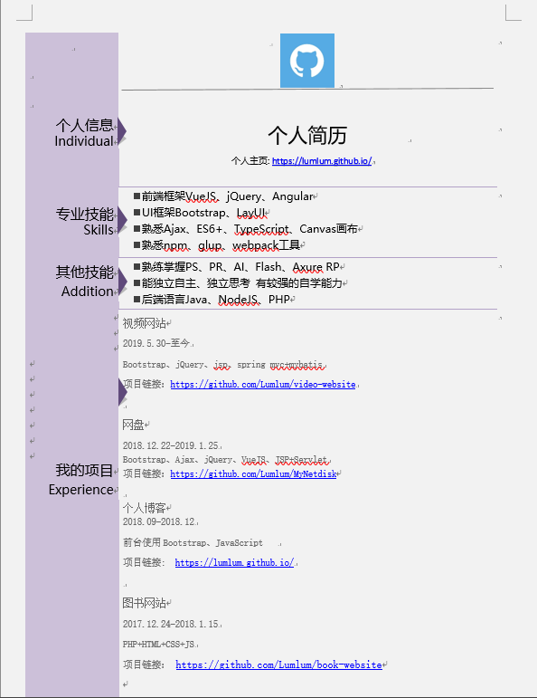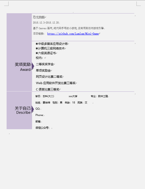 我们还是先从最开始的简历说起吧,先来让大家看下我的简历吧(仅供参考)