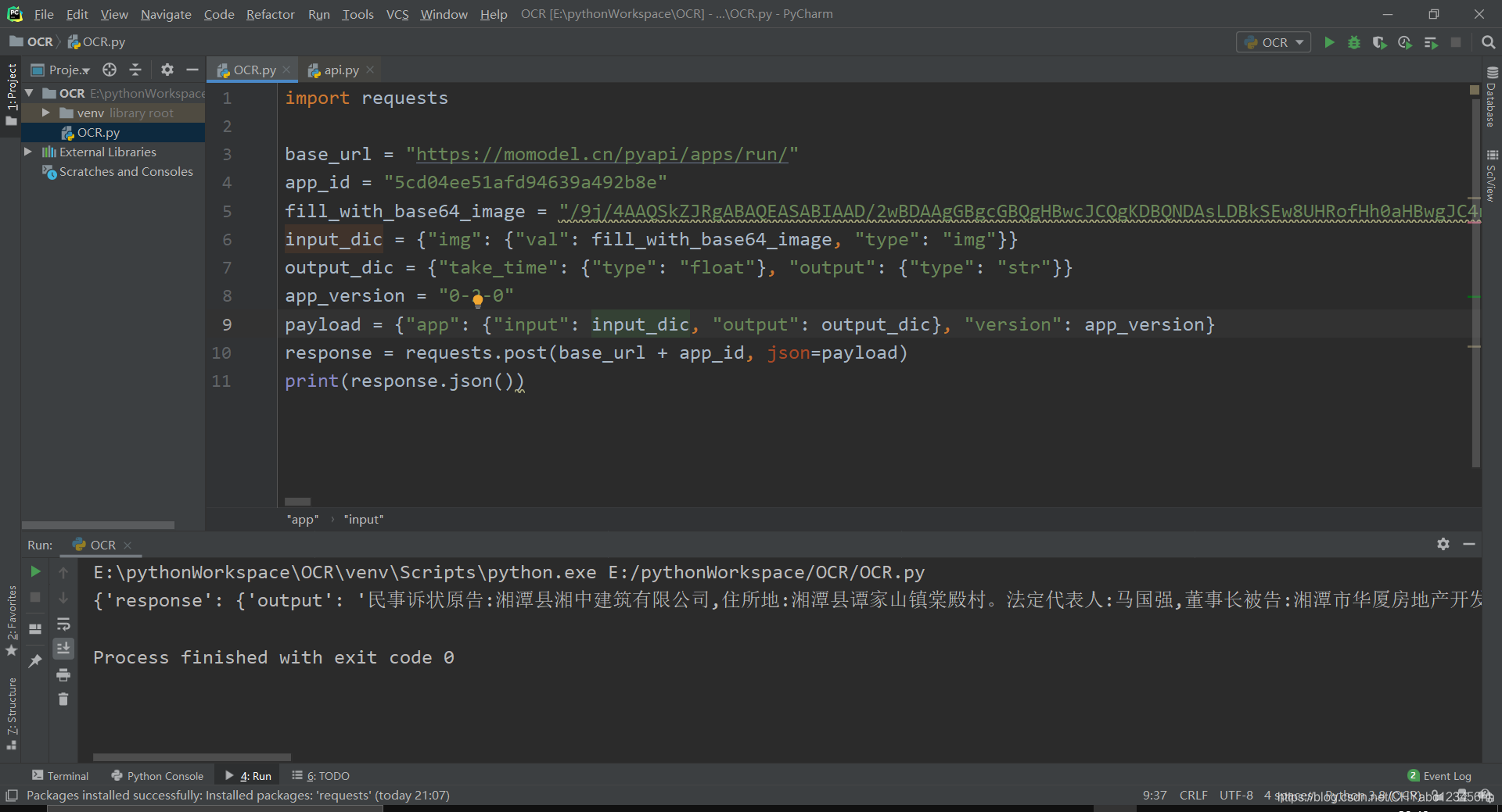 - 返回两个参数,take_time和output,take_time接收检测的时间,output接收识别后的字符串