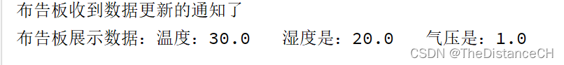 System.out.println("布告板展示数据:温度:" + temp + " 湿度是:" + h + " 气压是:" + p);