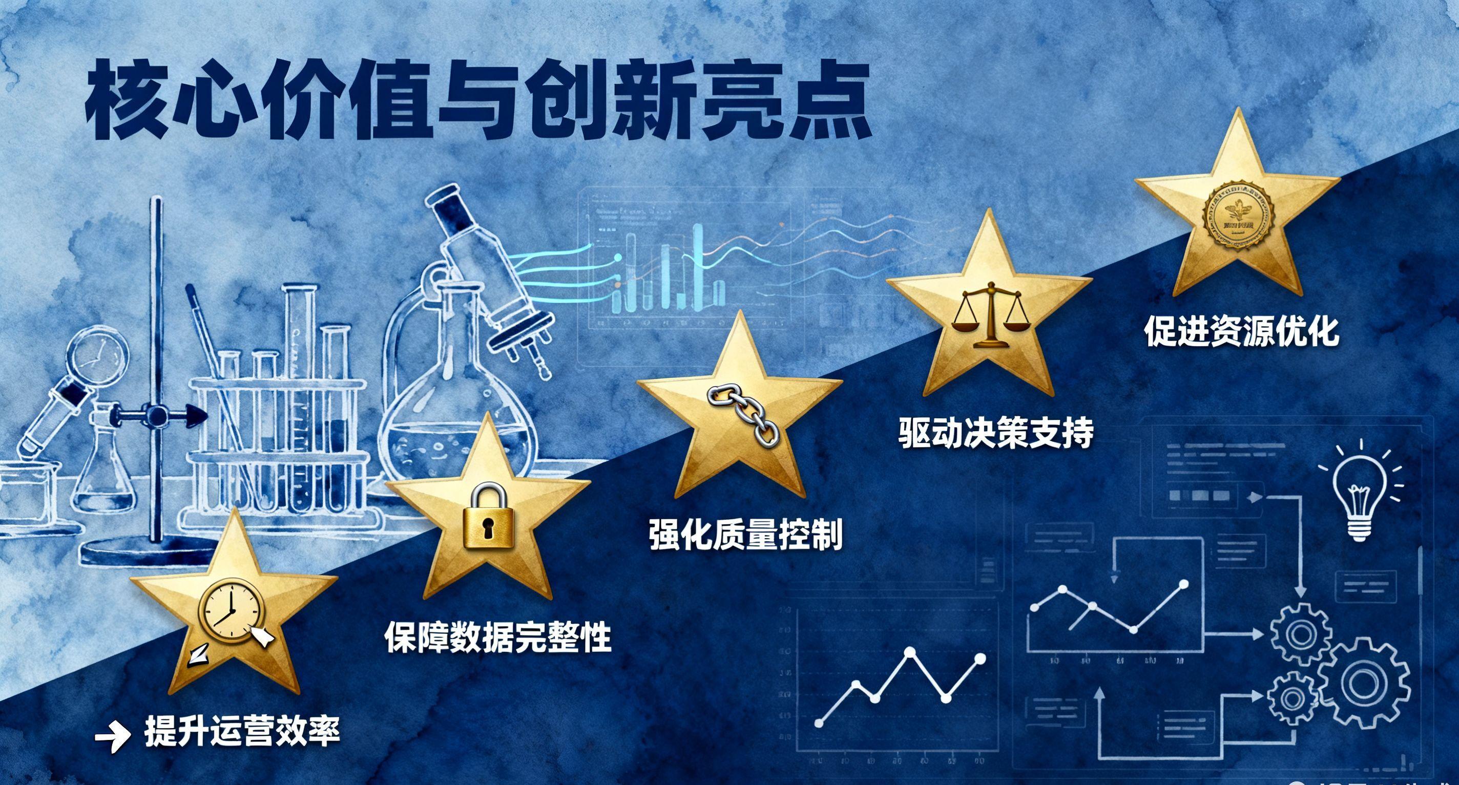 合规价值转化:系统通过将离散的合规要求转化为内置的流程控制点,使原本依赖人工监督的合规管理转变为系统自动执行的刚性约束,检测数据的可信度提升 40%以上,同时将合规检查准备时间从平均 72 小时缩短至 4 小时,显著降低实验室的合规风险与管理成本。