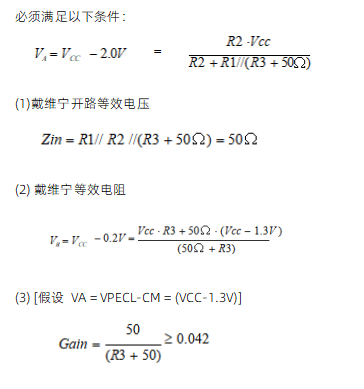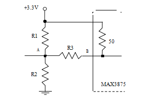 LVPECL 输出与 MAX3875 输入通过该网络连接,实测得:VA = 2.0V,VB = 3.13V。