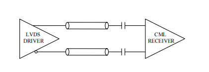 如果 LVDS 驱动器需要驱动一个 CML 接收器, 可以采用图 6 所示的交流耦合方式。