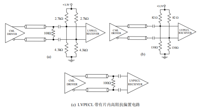 LVPECL 与 CML 之间的耦合方式可以是交流方式,也可以是直流方式。