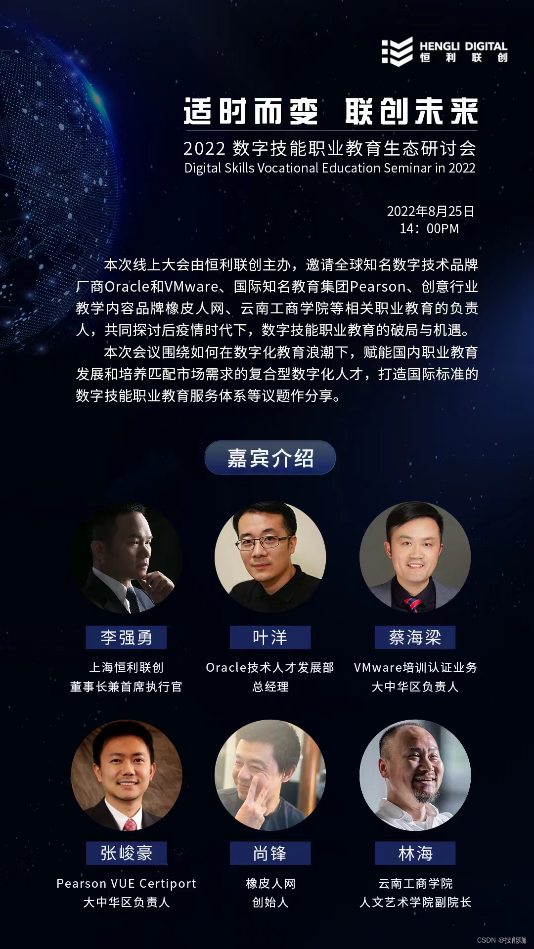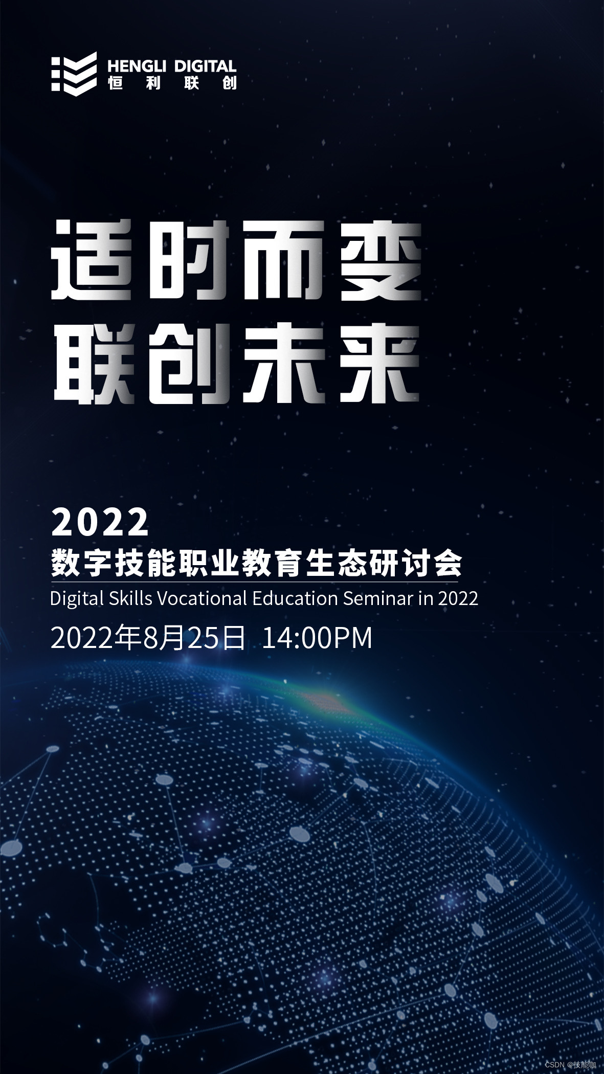 为了深入探讨后疫情时代下,数字技能职业教育的机遇与挑战,恒利联创将于2022年8月25日下午2点举办“适时而变,联创未来”2022数字技能职业教育生态研讨会。