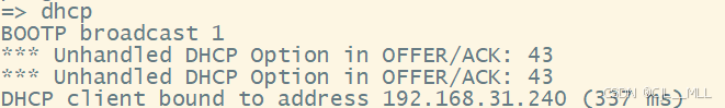 这个很重要,把网线查到电脑上就是ping不通,我试了很多次都不可以。之后使用在uboot使用dhcp命令得到