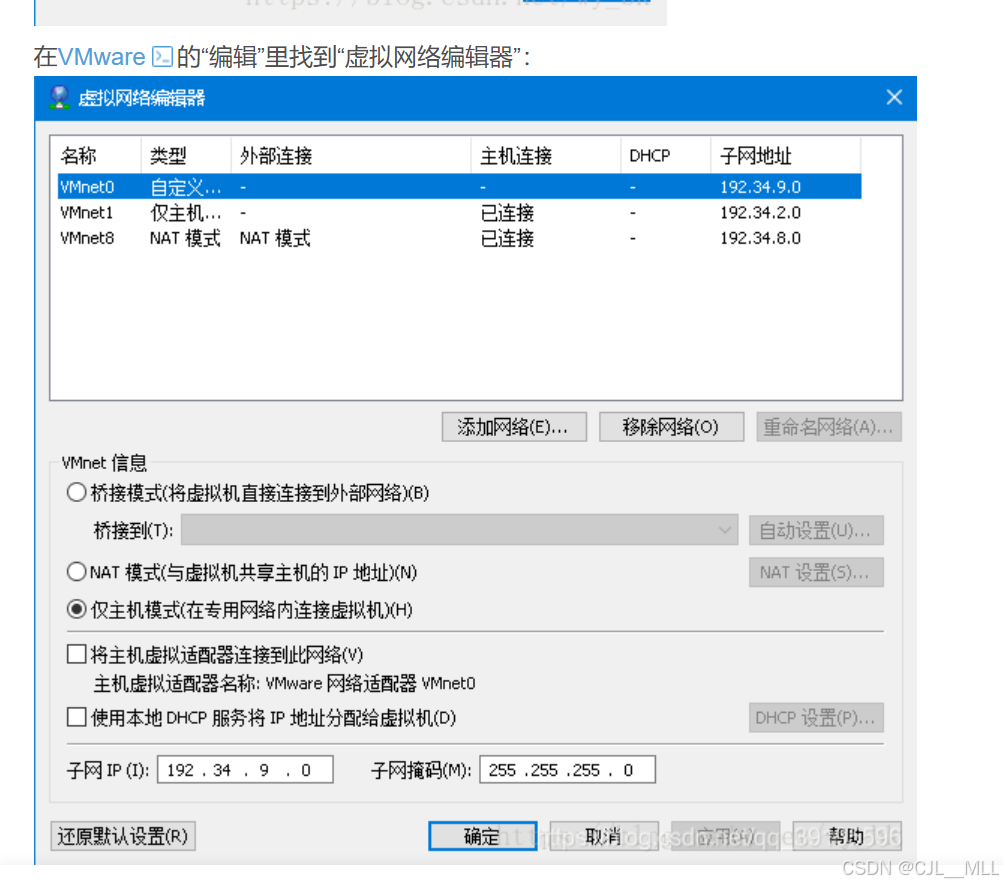 先说一下遇到的问题,之前使用VMware的net模式总是ping不通,然后去网上搜了一下教程,使用需要虚拟机使用桥接模式。