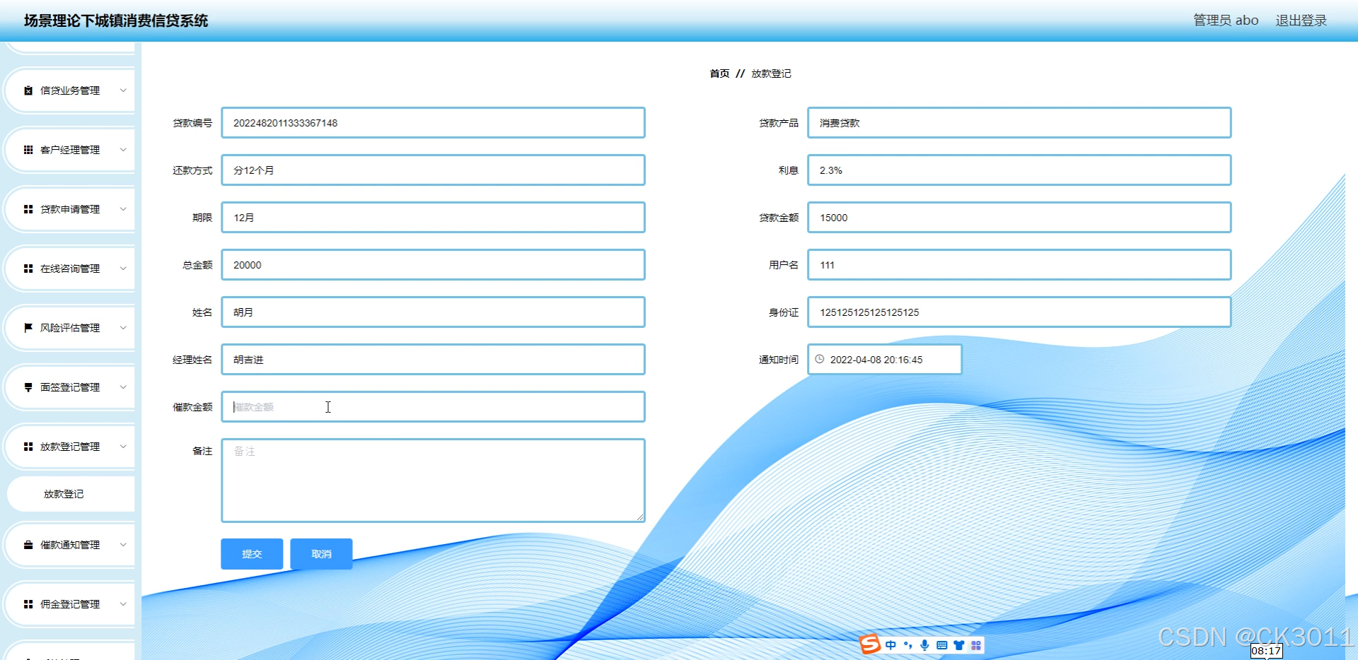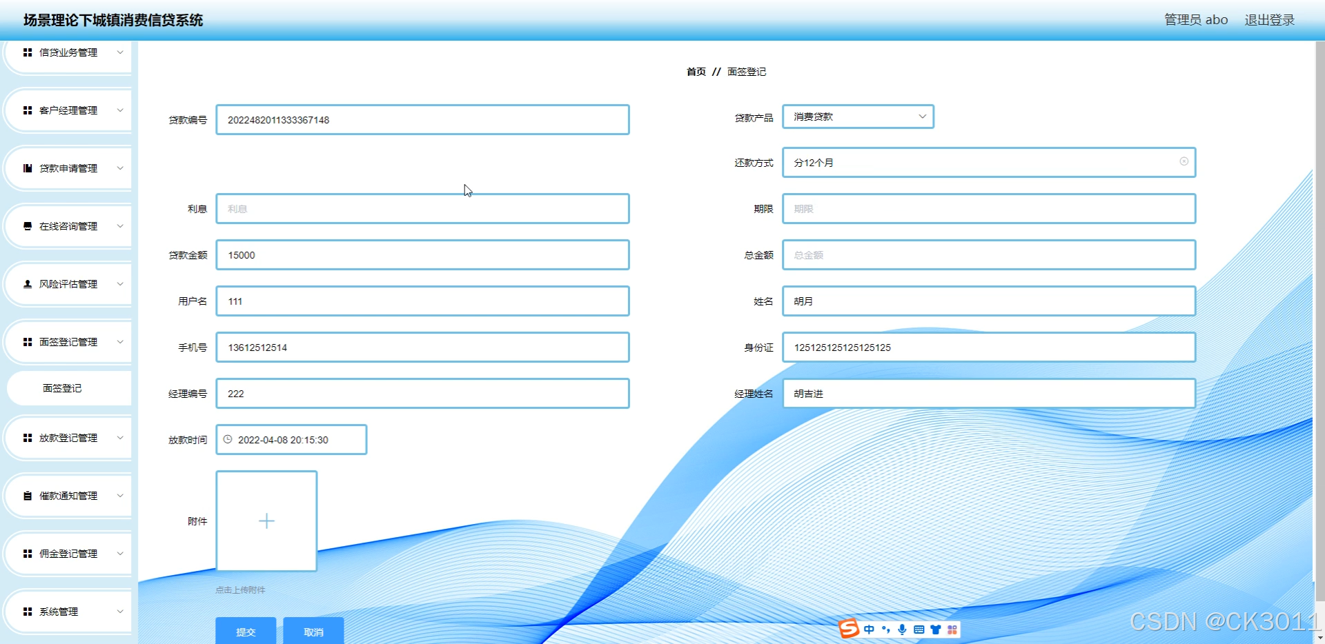 题目:基于场景理论的城镇消费信贷系统设计与实现