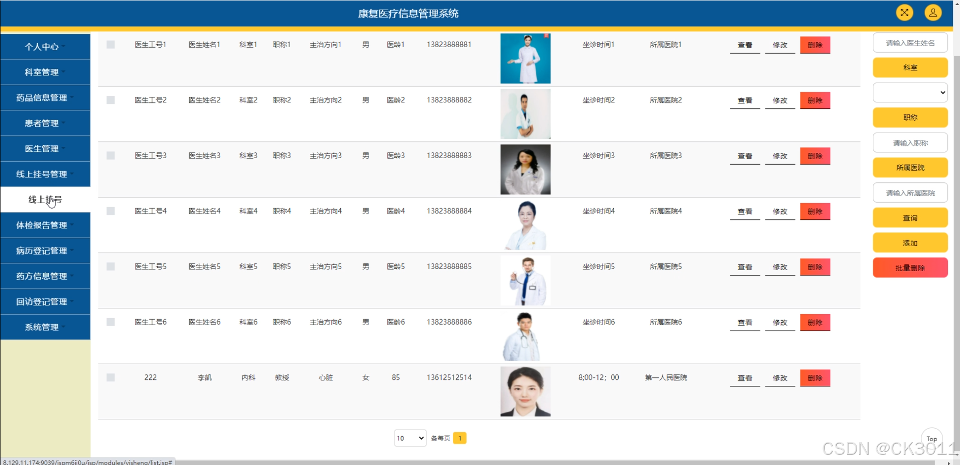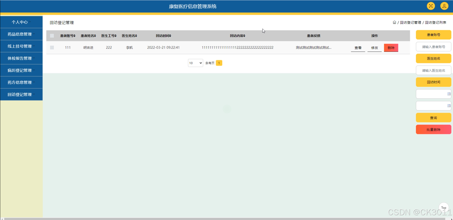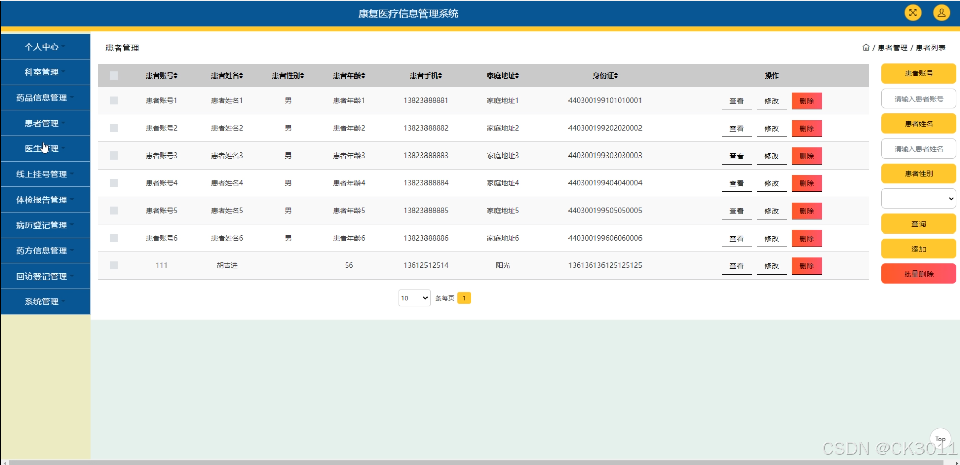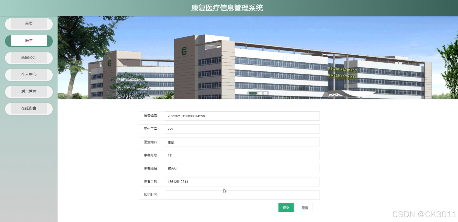 本系统主要研究内容包括患者信息管理、康复训练管理、医疗资源管理、信息交互功能以及数据统计与分析等模块。通过该系统,患者可以查看自己的康复训练计划和生理指标,医生能够管理自己的出诊信息并查看患者病情。此外,系统还具备患者留言功能,方便患者与医生之间的沟通交流。
