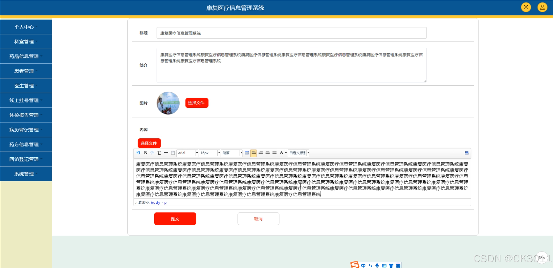 随着康复医学的快速发展,康复医疗信息管理系统应运而生。该系统通过集成康复医疗相关的各类数据,为医护人员提供全面、准确的康复病患信息,以支持康复治疗的高效进行。本研究旨在设计并实现一个康复医疗信息管理系统,以提升康复医疗服务的质量和效率,减轻医护人员的工作负担,同时提高患者的康复效果和生活质量。