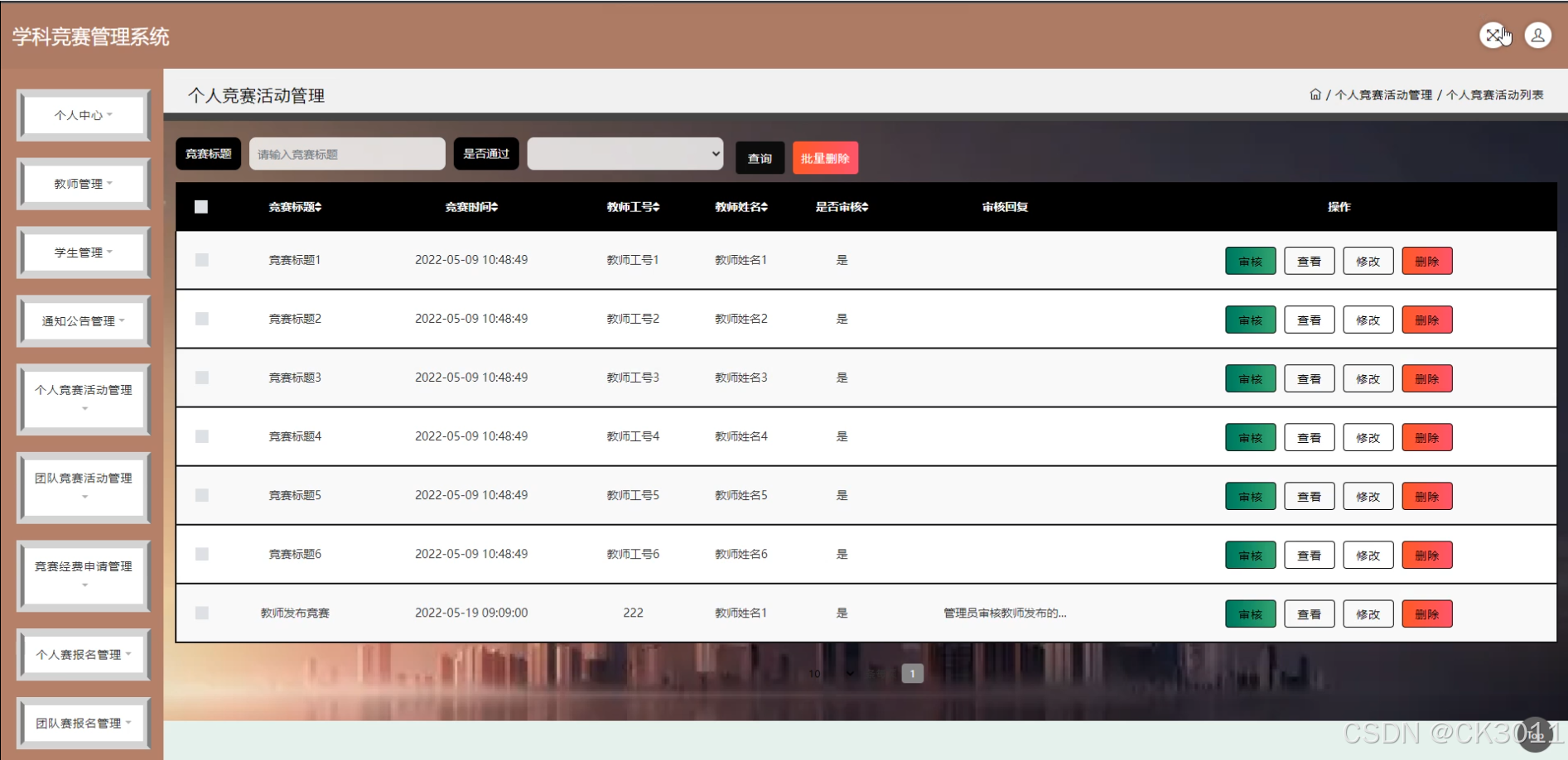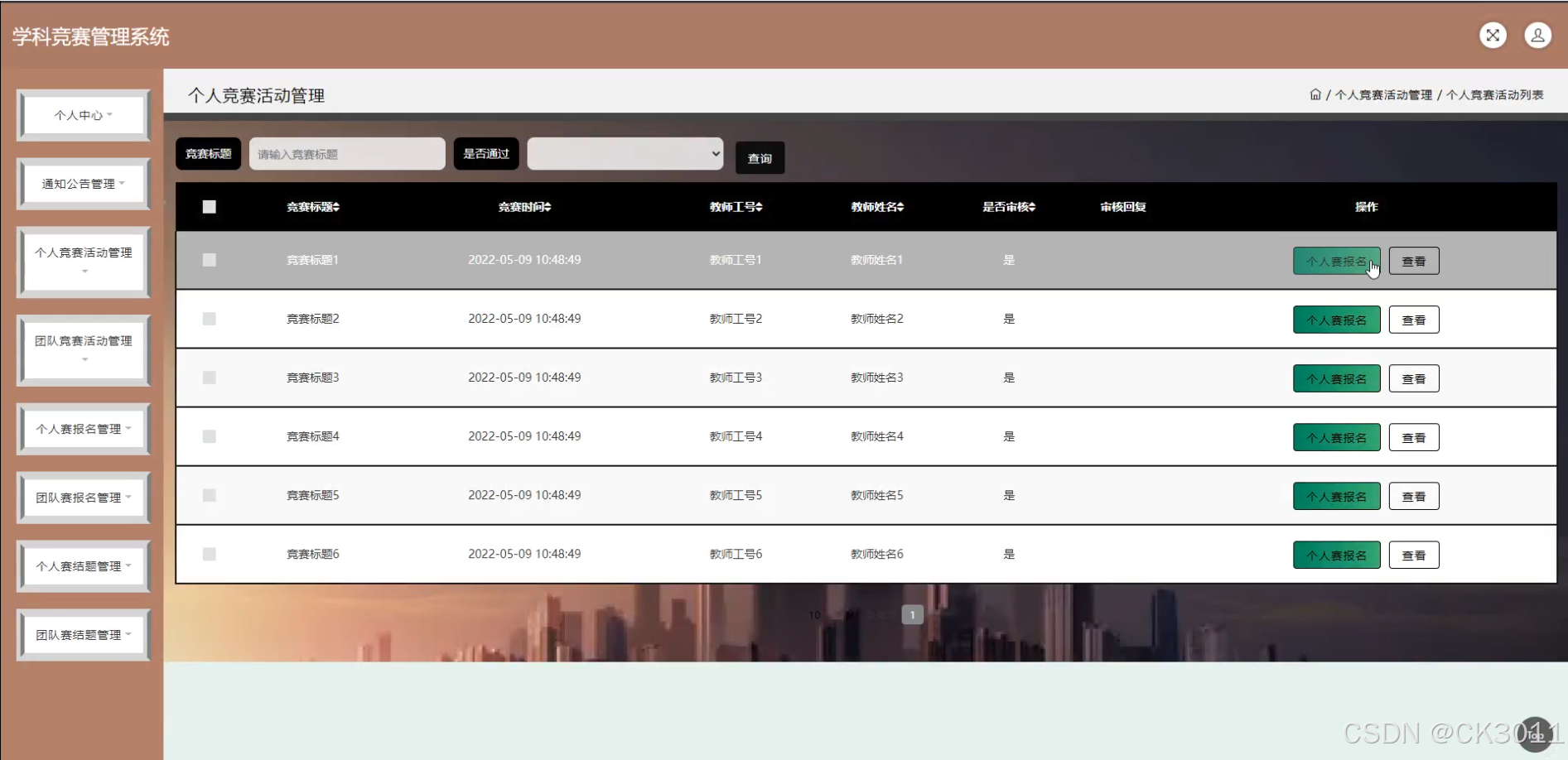 - 智能报名系统:支持多赛道分组报名,自动校验资格条件。