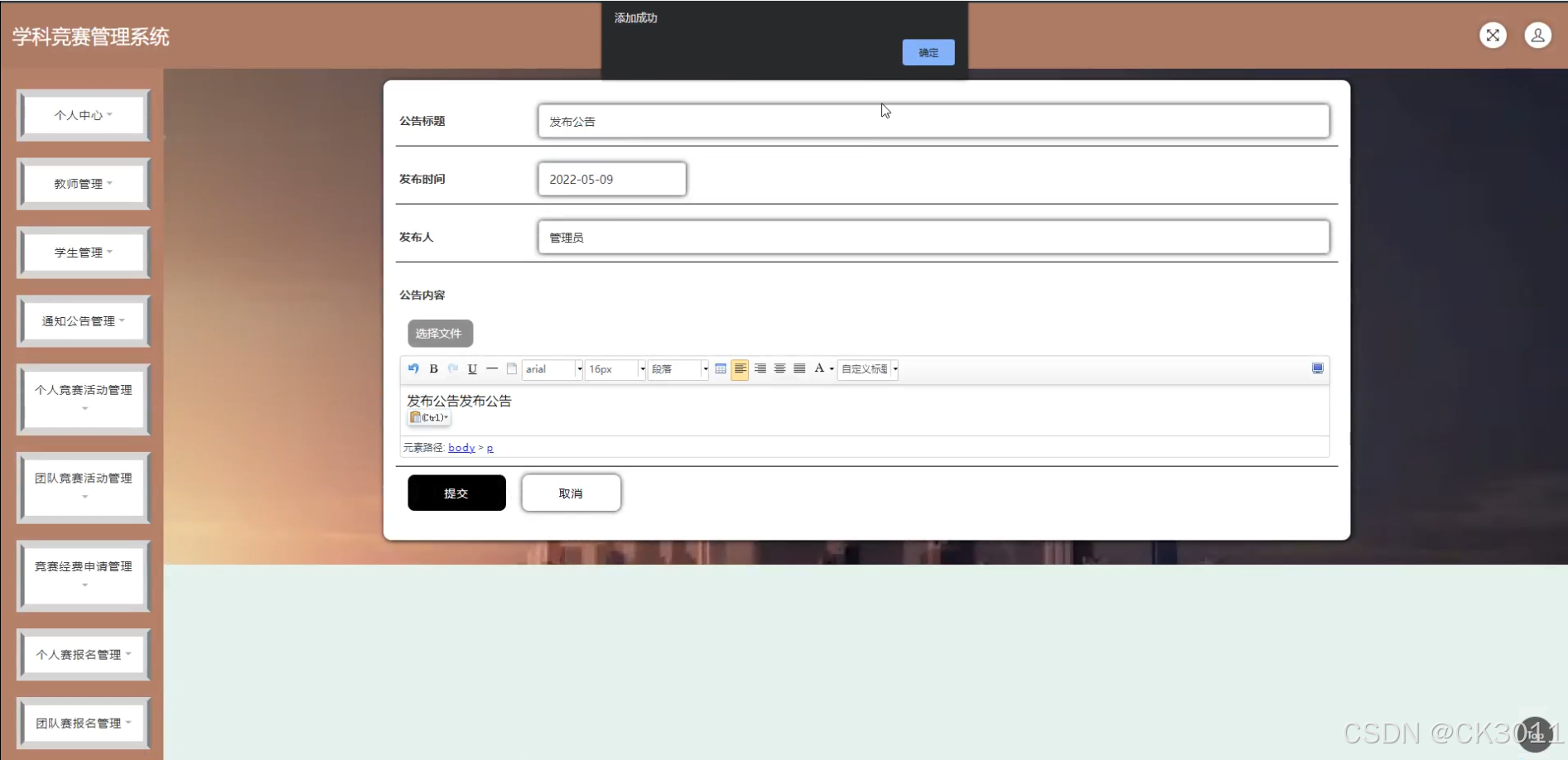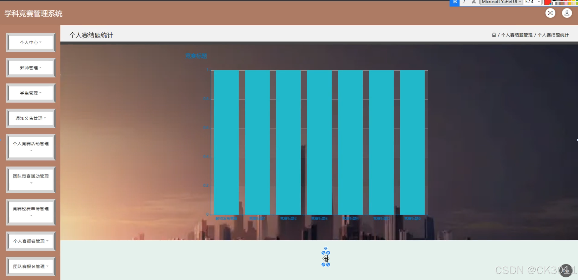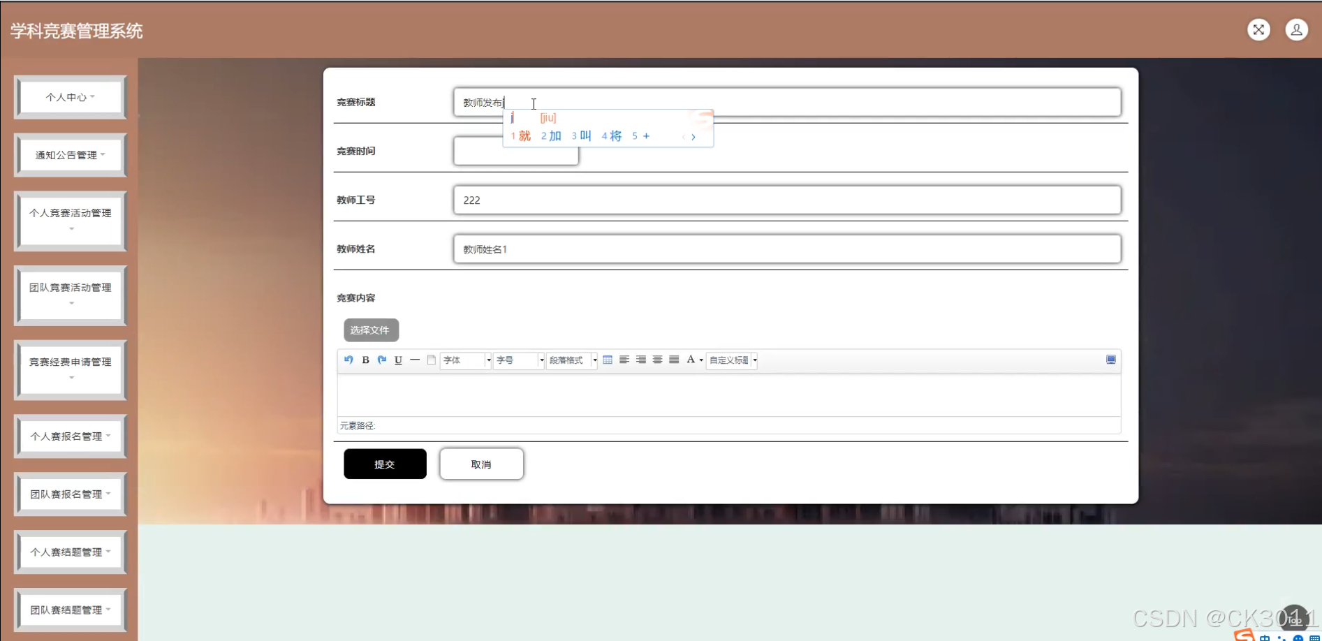 在创新驱动发展战略背景下,学科竞赛作为人才培养重要载体,面临报名流程繁琐、评审标准不一、数据分析薄弱等痛点。本系统旨在构建全周期管理云平台,实现"发布-报名-评审-公示"全流程数字化,提升竞赛组织效能。