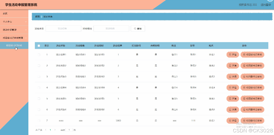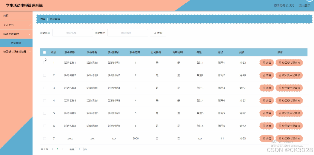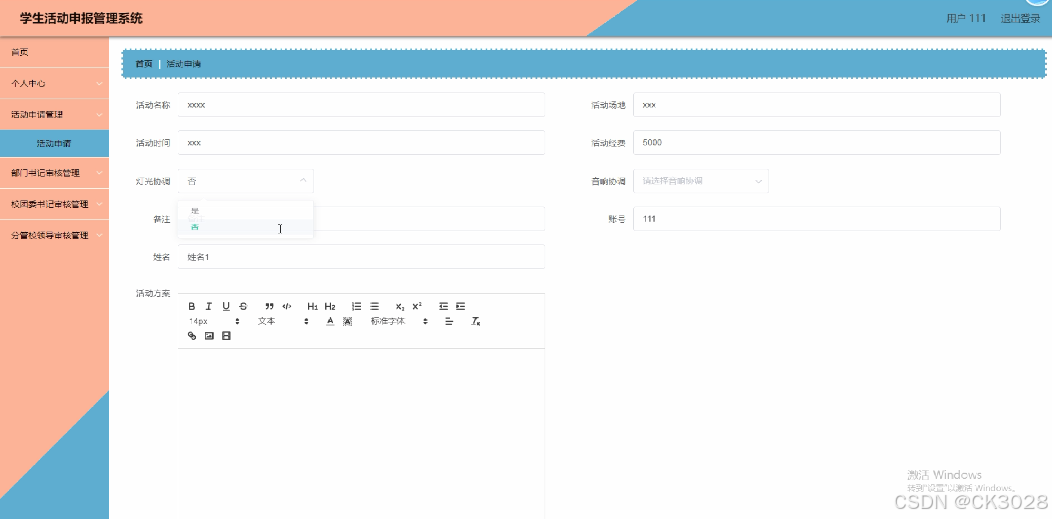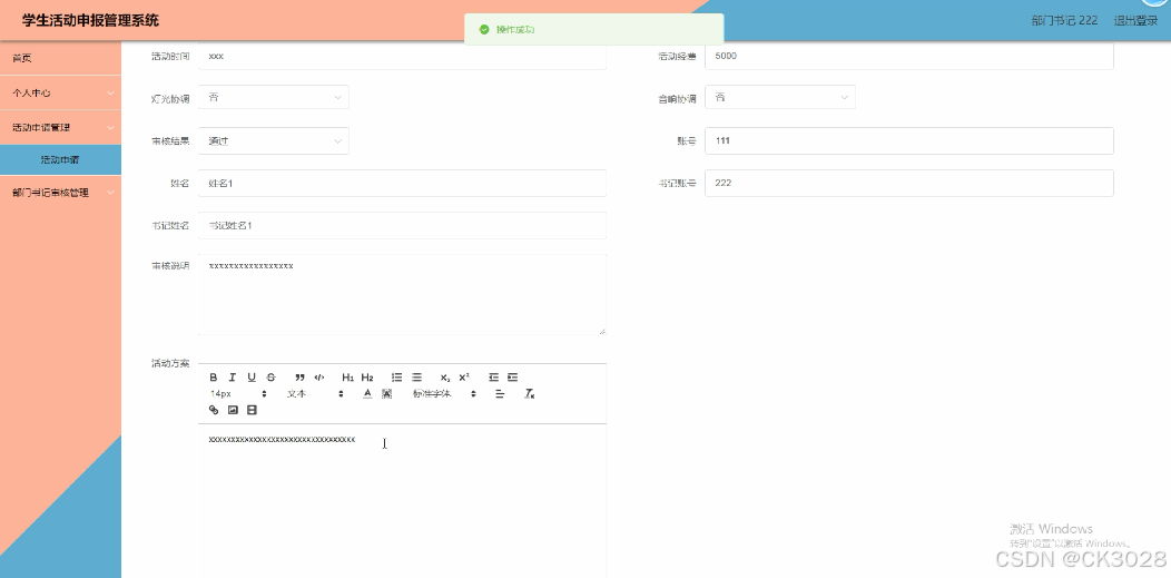 - 接收申请:校团委书记可接收并查看部门书记提交的活动申请。