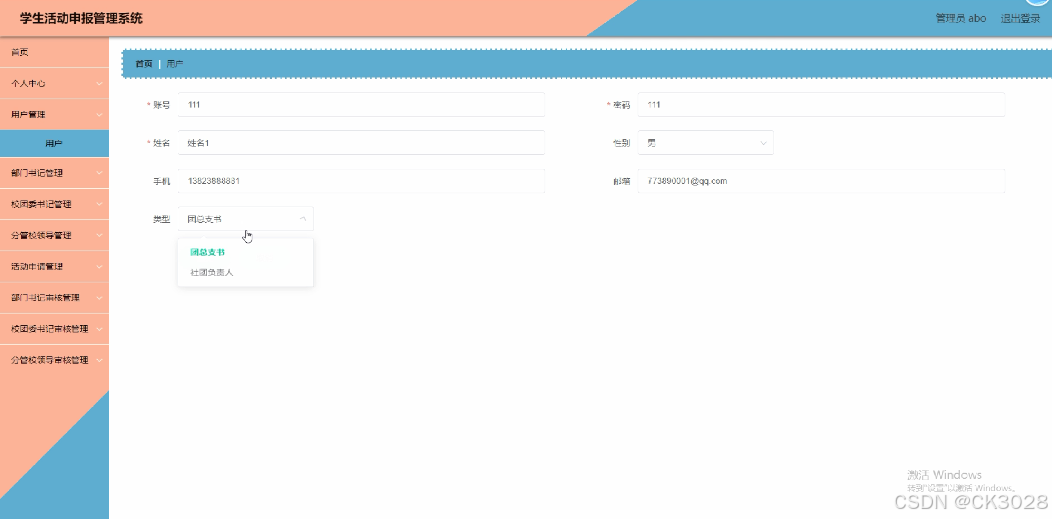 | 用户,部门书记,校团委书记,分管校领导,部门书记审核,校团委书记审核,分管校领导审核,活动申请 |