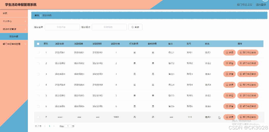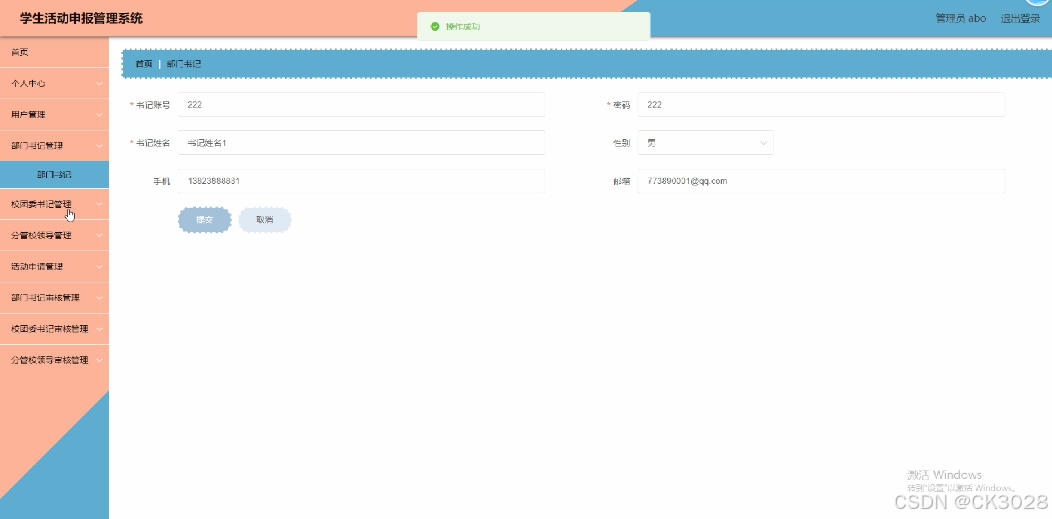 - 接收申请:部门书记可接收并查看本部门学生提交的活动申请。