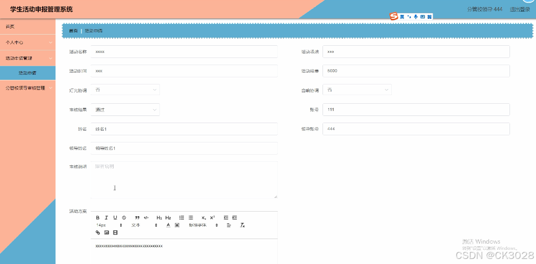 - 接收申请:分管校领导可接收并查看校团委书记提交的活动申请。
