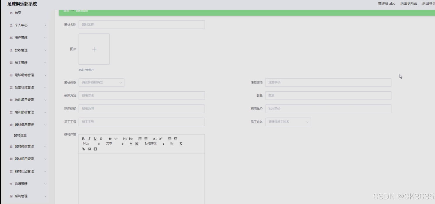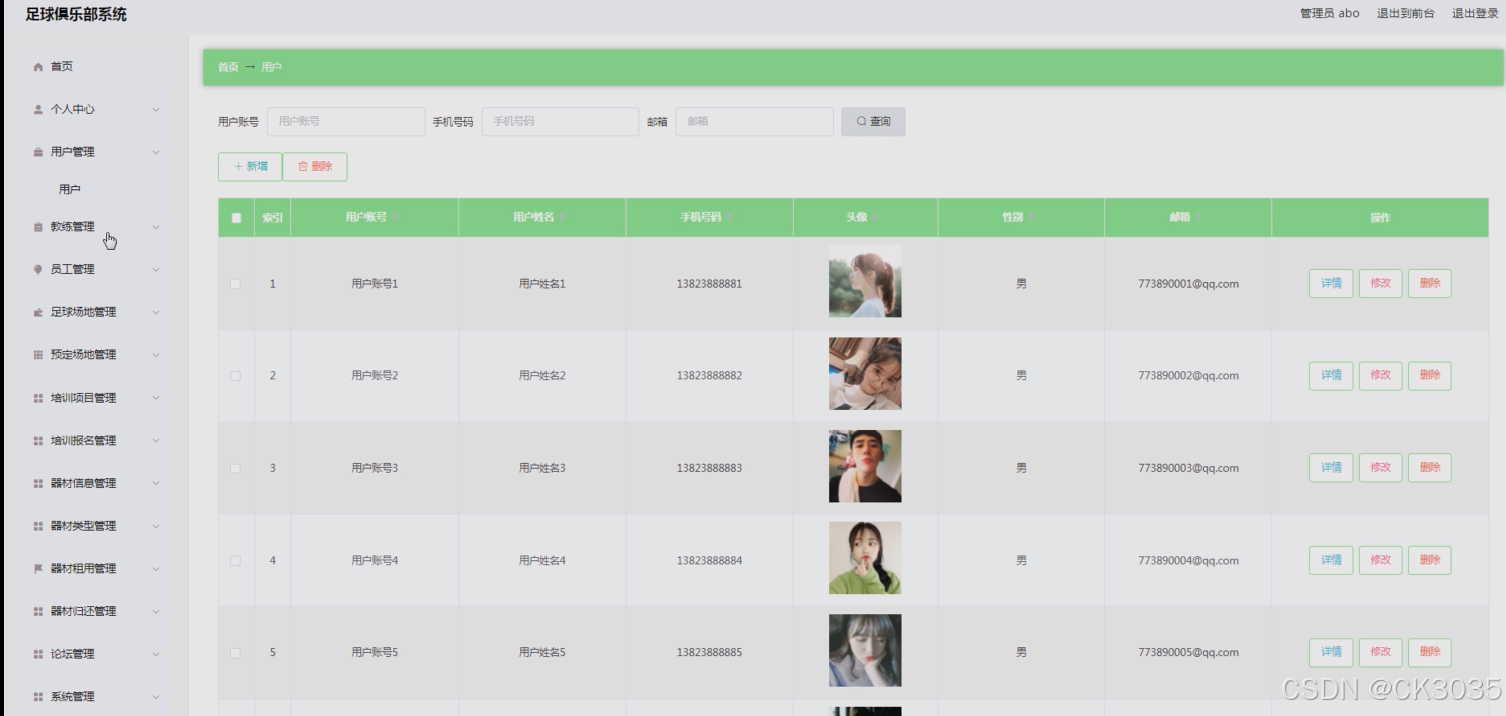 - 开发出一个基于SpringBoot框架的足球俱乐部管理系统,该系统具备球员信息管理、教练团队管理、赛事安排与记录、财务管理、会员服务以及系统维护等全方位的功能。