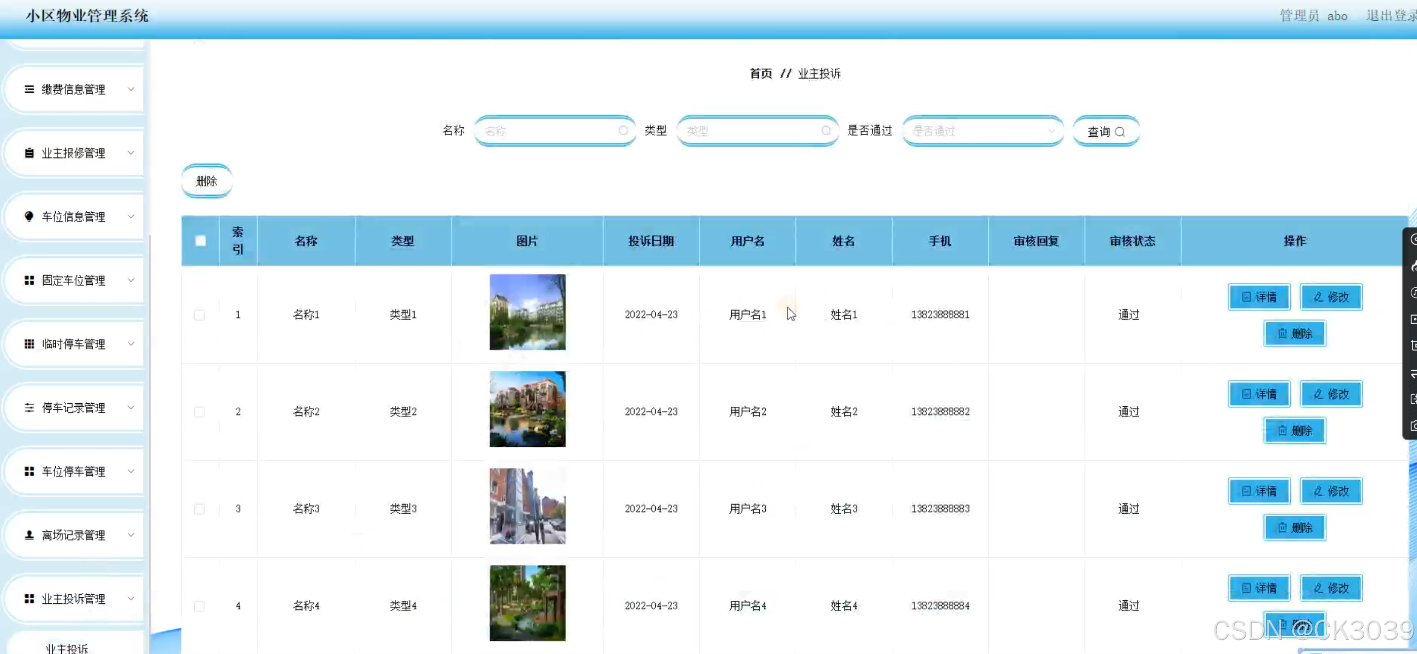 - 实现业主信息的集中管理,便于物业快速响应业主需求。