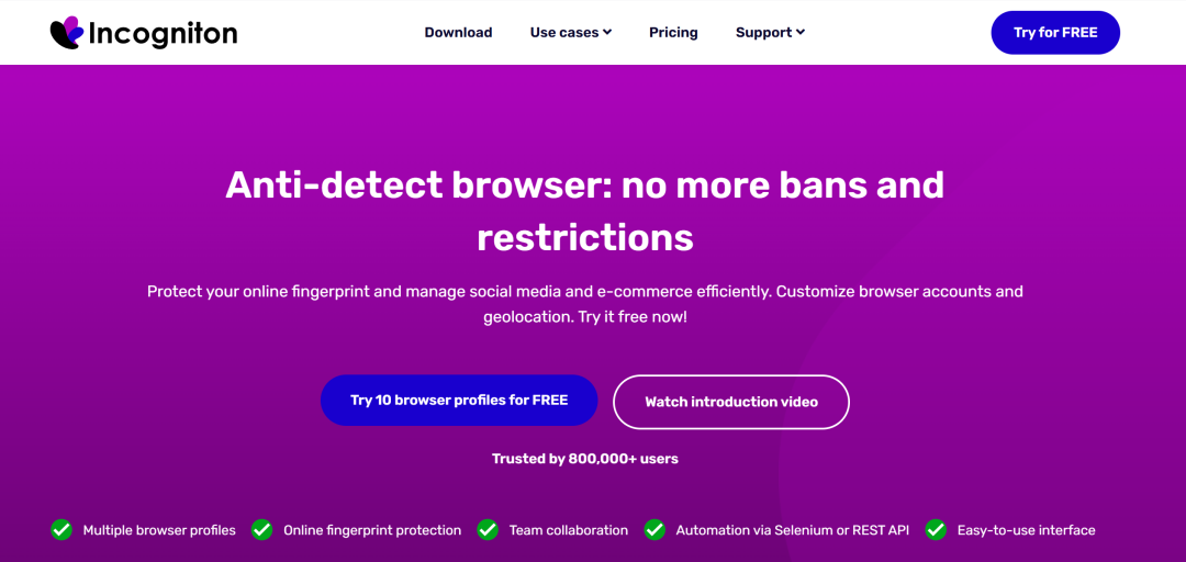Kameleo是一款反检测浏览器,适用于Facebook、Amazon、LinkedIn等平台的多账户管理,采用先进的指纹技术和代理,防止账号被封。提供2个免费环境,客户端无手机版
