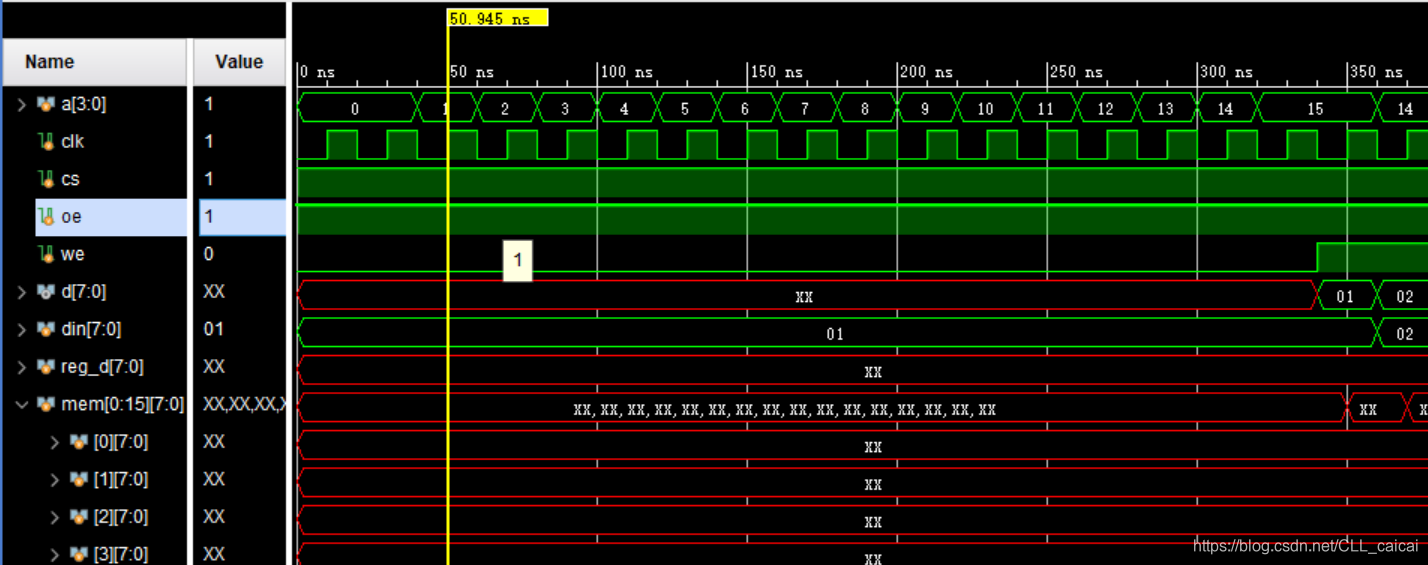reg [3:0]a;//输入地址(RAM深度为16,对应地址位宽为4)