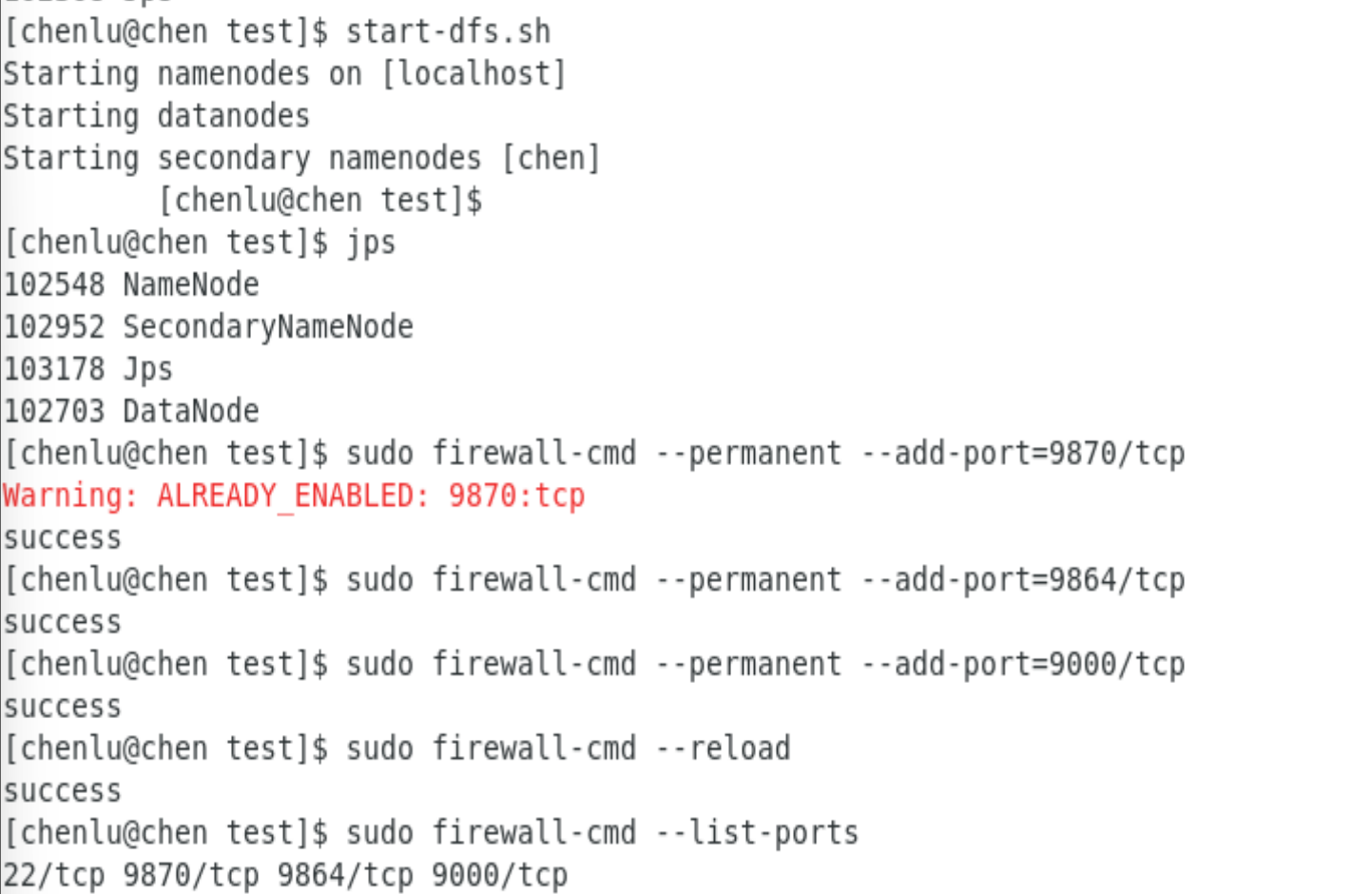sudo firewall-cmd --permanent --add-port=9000/tcp # HDFS服务端口