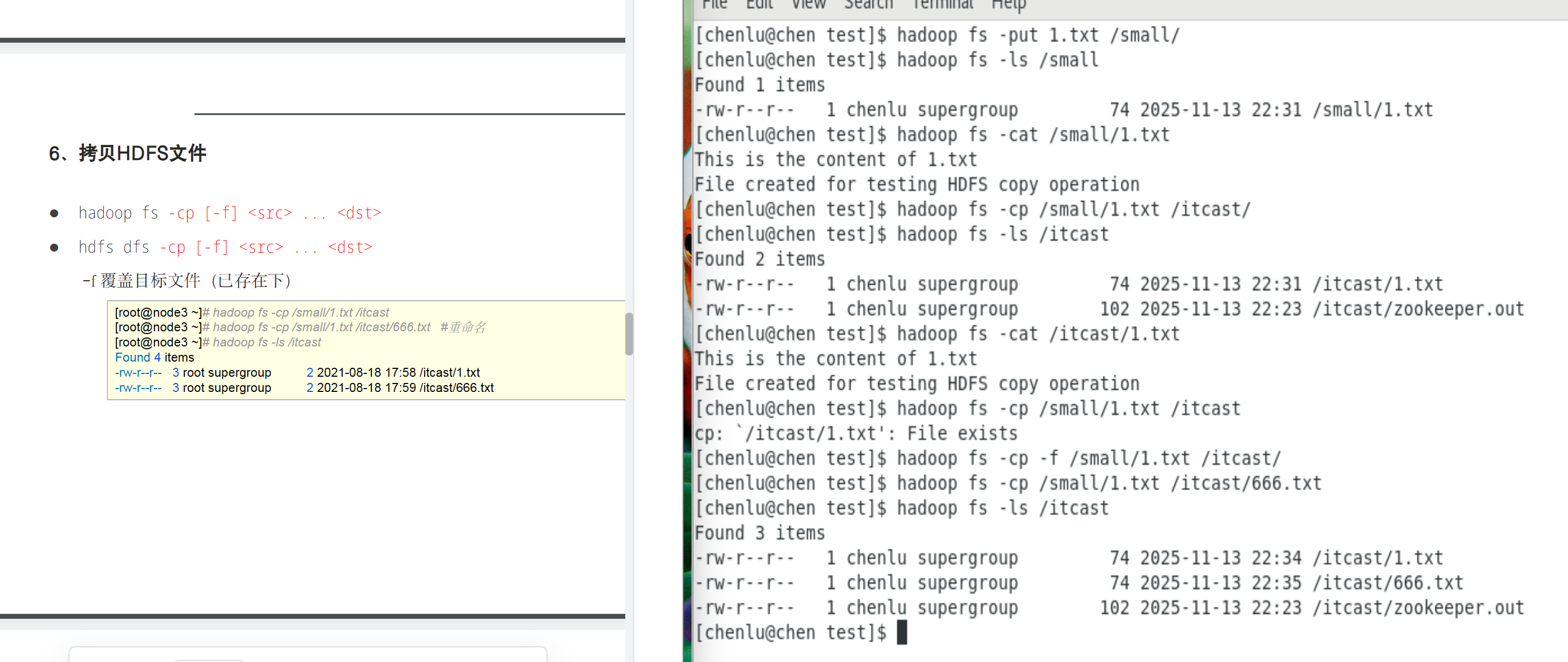 命令官方指导文档:https://hadoop.apache.org/docs/r3.3.4/hadoop-project-dist/hadoop-common/FileSystemShell.html