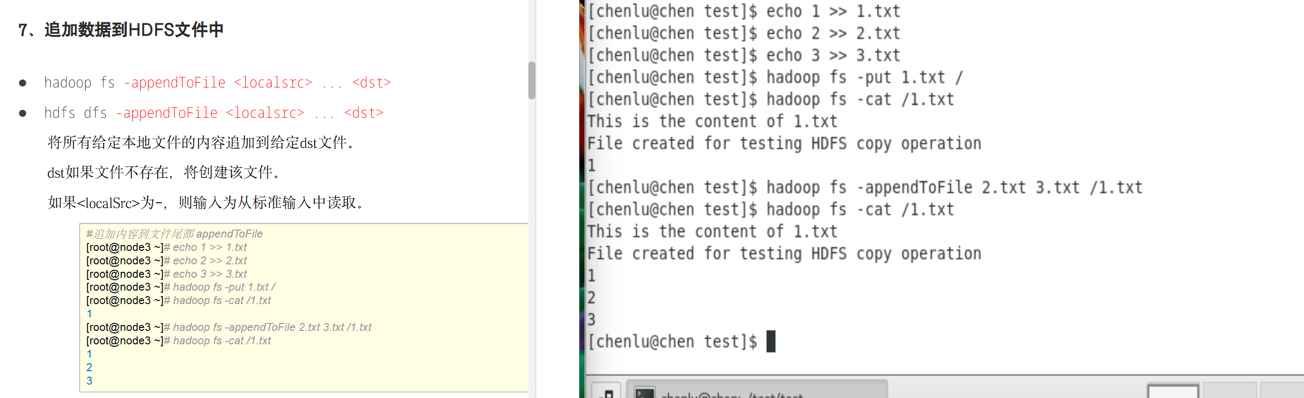 hadoop fs -appendToFile <localsrc> ... <dst>