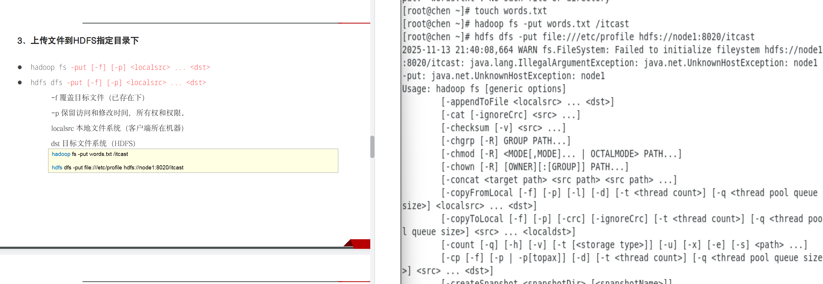 hdfsdfs-put[-f][-p]<localsrc>...<dst>