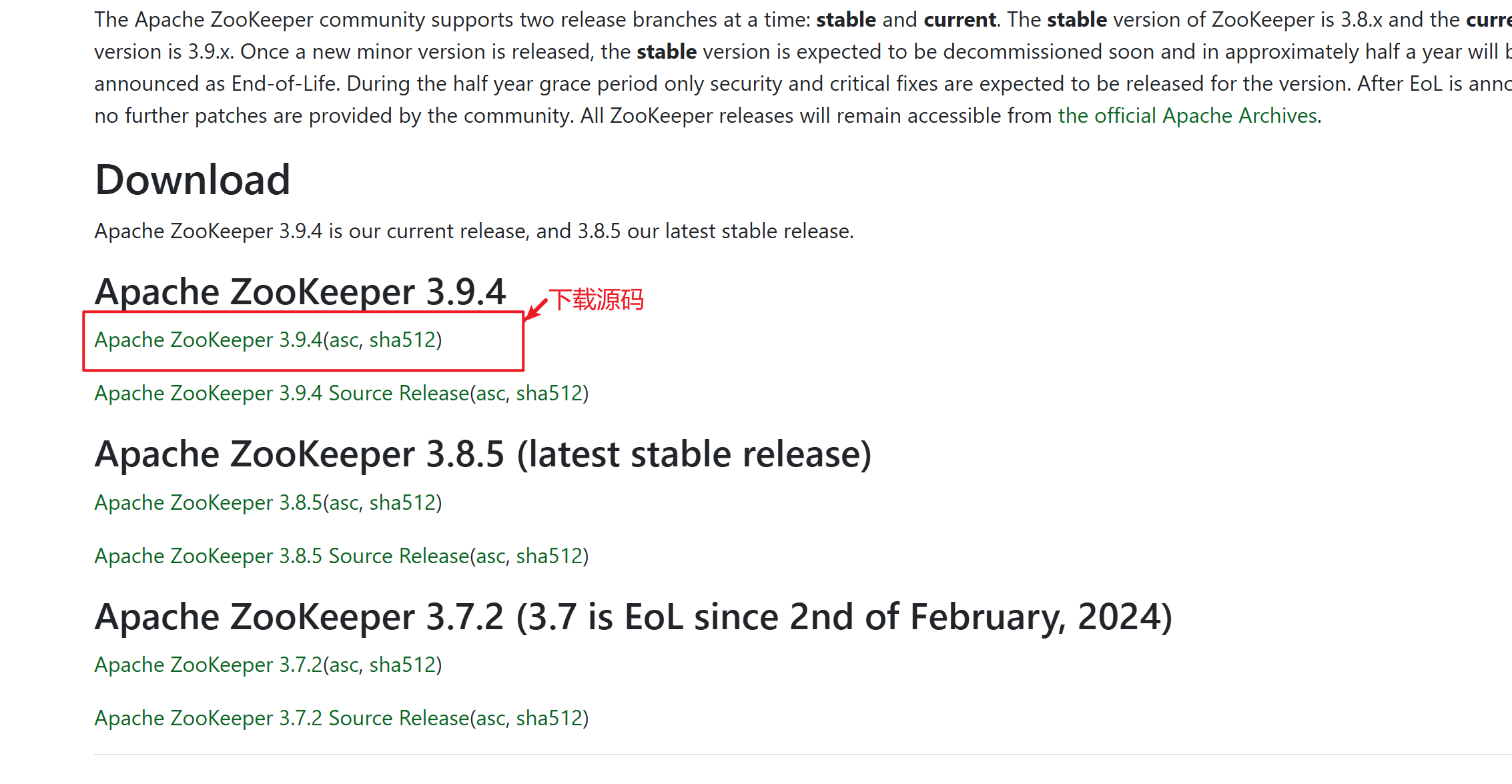 选择稳定版本,zookeeper 下载地址为: https://zookeeper.apache.org/releases.html