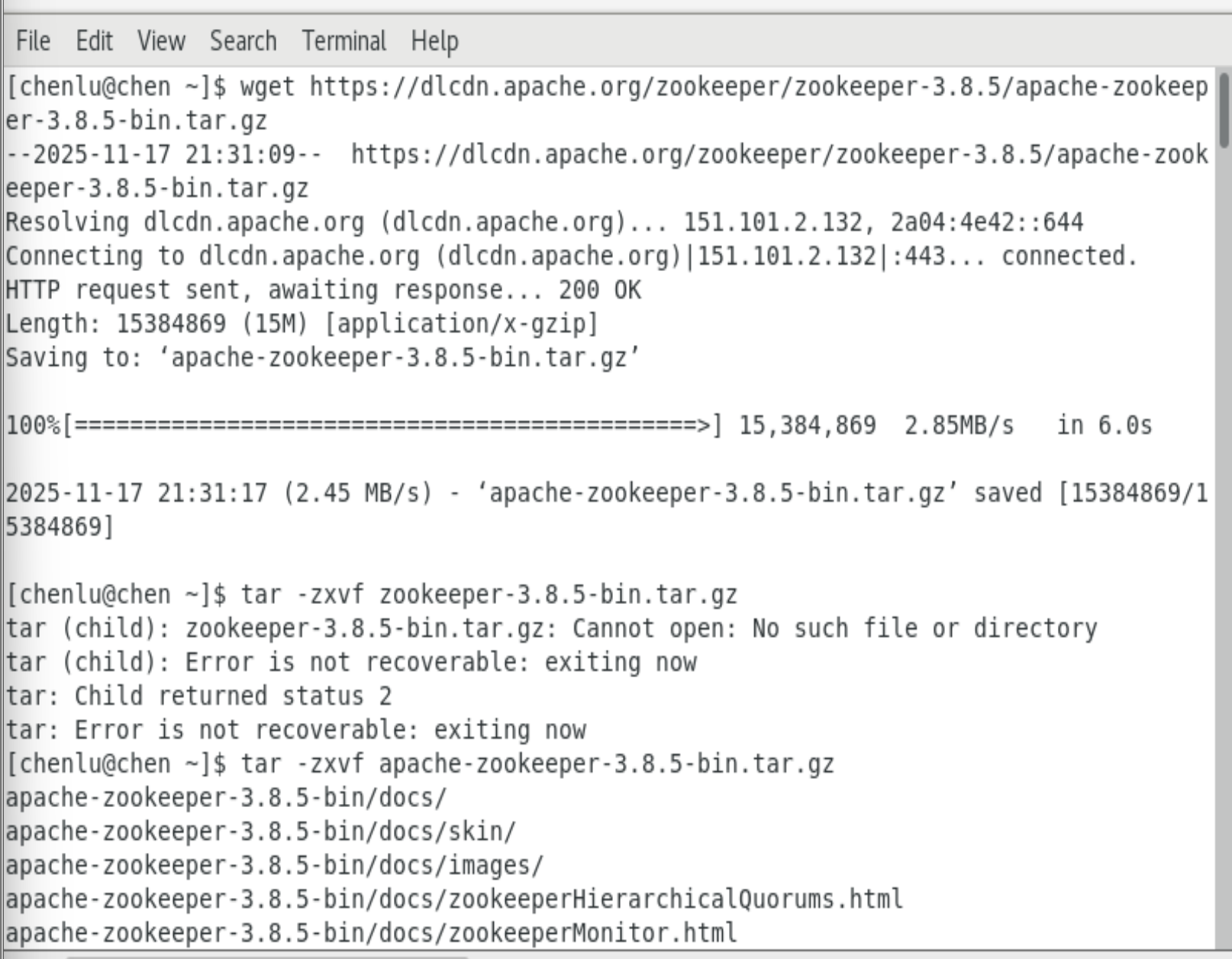 $ wget https://dlcdn.apache.org/zookeeper/zookeeper-3.8.5/apache-zookeeper-3.8.5.tar.gz