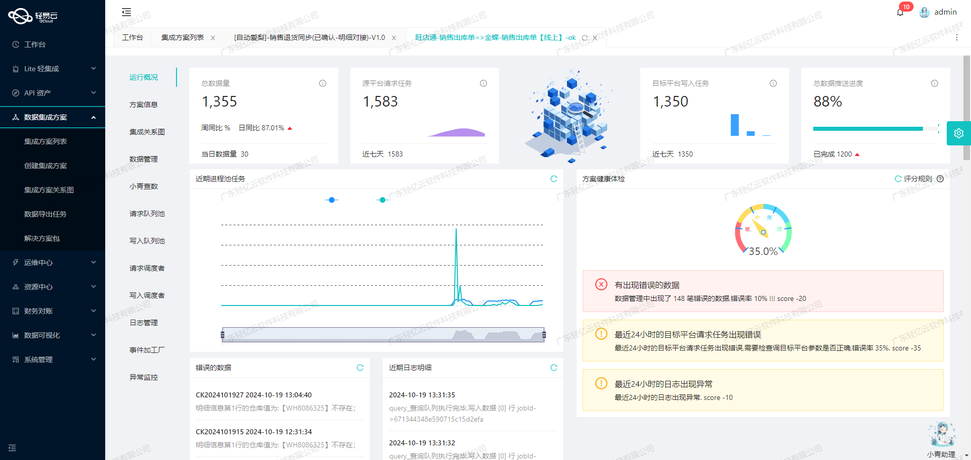 为了确保整个集成过程顺利进行,我们配置了集中监控和告警系统,实时跟踪每个数据集成任务的状态和性能。一旦出现异常情况,例如接口限流或分页问题,系统会自动触发错误重试机制,并记录详细日志以便后续分析和优化。