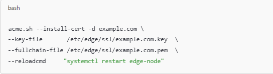 如果你在 EdgeNode 服务器中想手动申请证书(非推荐方式),可以使用 acme.sh 工具: