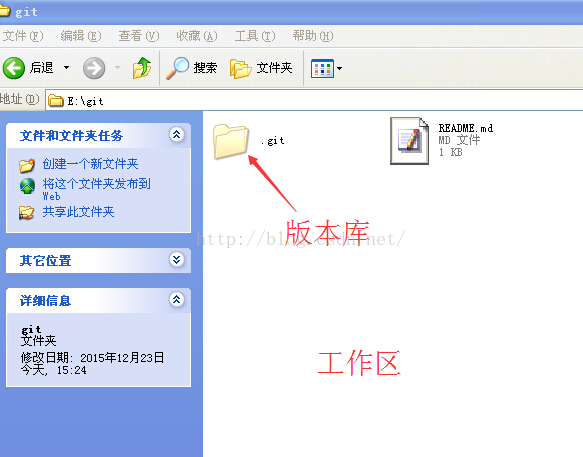 工作区就是我们程序放置的文件夹,也就是当初我们git init初始化的那个目录。在小编这里e:/git文件夹就是一个工作区。但是在工作区有一个不速之客,那就是.git文件夹,它不属于工作区,我们称之为版本库。相比于工作区,版本库的内容就丰富了许多,当然这里先不研究其他的,只说下今天的另一个重点,暂存区。