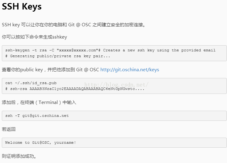 - git clone git@git.oschina.net:xxxxxxxx/git.git