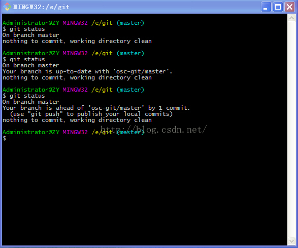 区别二:一会我们会讲到git pull命令,是用于拉取远程分支内容的命令,使用-u之前,我们必须使用完整的命令git pull osc-git master来拉取远程分支内容,直接使用git pull的时候会报错的,但是使用过-u之后,我们可以直接使用git pull来拉取远程master分支的内容,当然也只能拉取远程的master分支(这里只是以master分支为例,实际能够拉取的分支以你在使用-u的时候绑定的远程分支为准)。