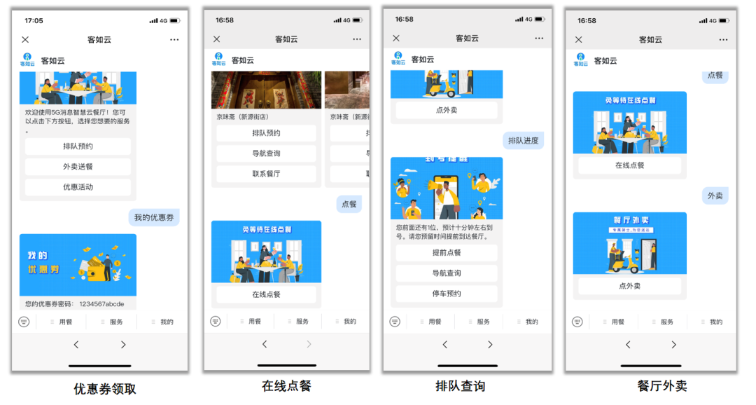 5G消息为餐饮业构建一个全新的客户沟通渠道,增强客户对餐饮营销信息的体验和感受,通过数据分析,实现客户精准营销,有效提高用户粘性和转化率。