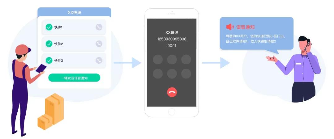 12539语音通知还能用于公共服务、快递物流、订单提醒、上课通知等场景,支持行业客户定制IVR交互、根据用户场景定制触发条件,提高企业场景化的呼叫服务效率。