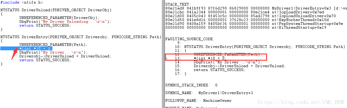 左边高亮的代码就是最后引发异常导致系统崩溃的代码了