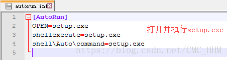 在autorun.inf文件中会启动setup.exe,setup.exe会进行后续其他操作。