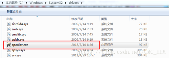 程序会在C:\Windows\System32\drivers这个目录下拷贝一个文件,文件名为spo0lsv.exe。