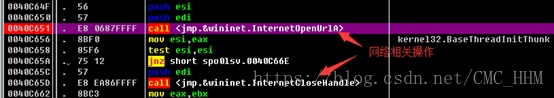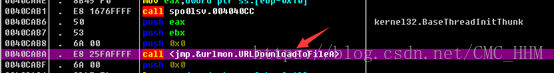 关键API为URLDownloadToFileA,该API能够从指定URL读取内容并保存到指定文件中。