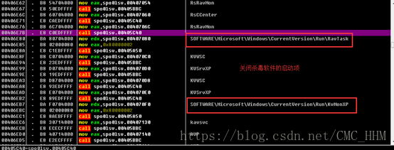 使一系列的杀毒软件启动项设置失效,保护自身不被杀毒软件检测出来