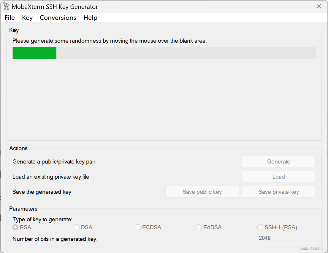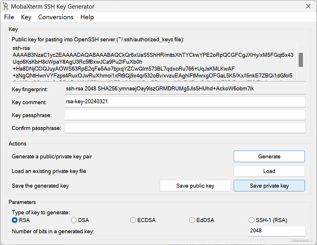 P.S. 【保存类型】默认是 "*.ppk",最终私钥文件名为 "cxq.ppk"
