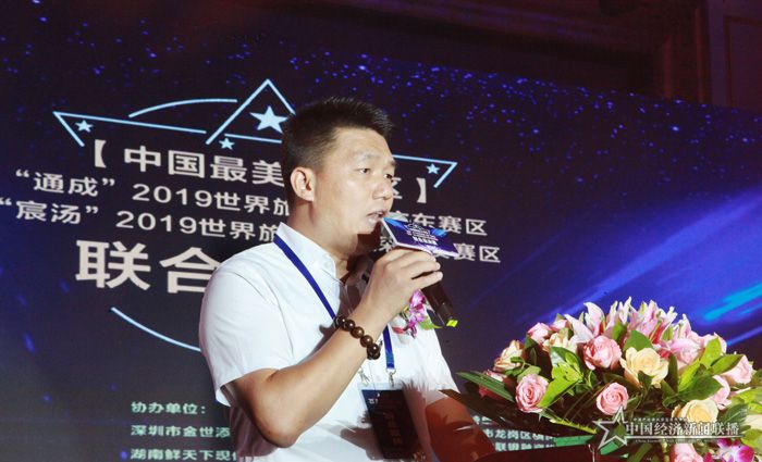 图为:“宸汤”世界旅游小姐大赛深港澳赛区组委会副主席、深圳市宸汤投资有限公司CEO汤平致辞。