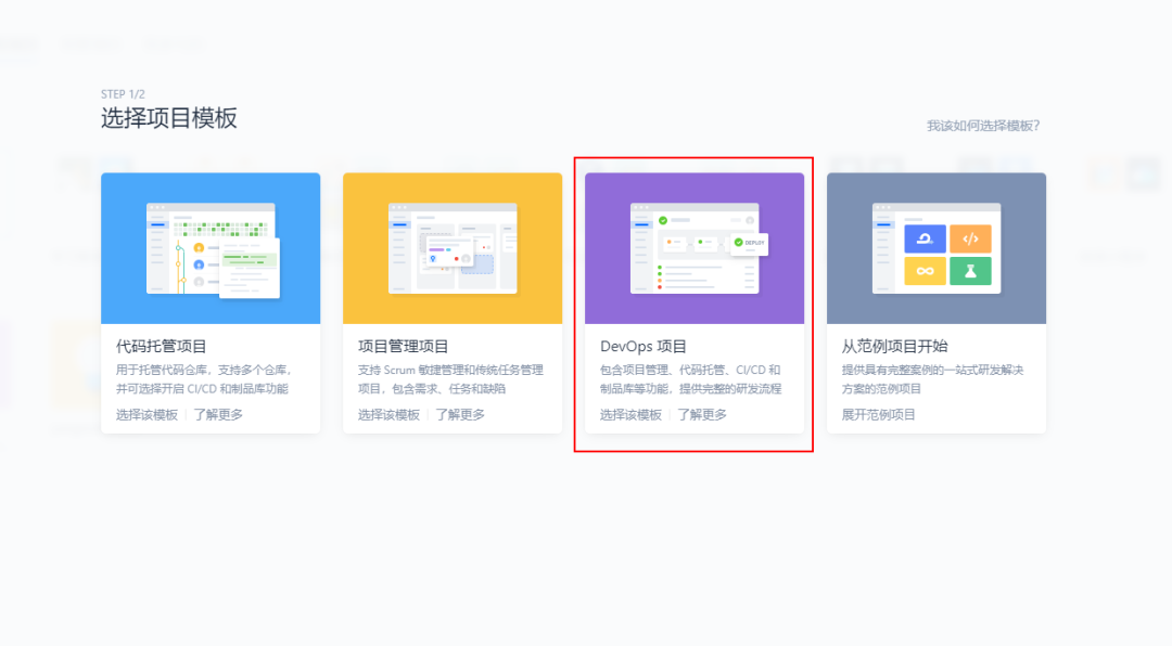 选择新建项目时的所用到的模板,这里选择 DevOps 模板,进入下一步。